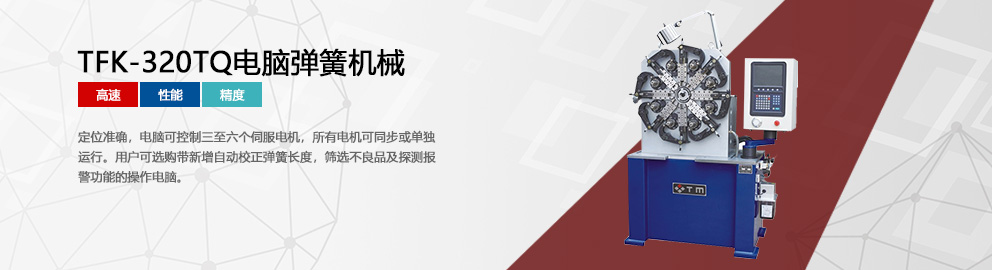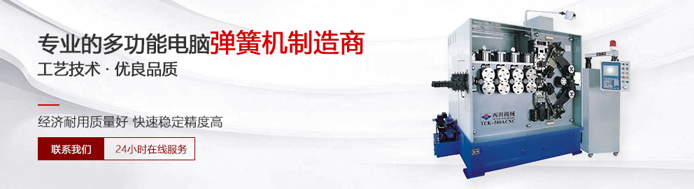 東莞市西田彈簧機械有限公司,位于美麗的珠江畔,中國最具魅力城市——東莞市,地理位置優(yōu)越,交通方便。 東莞市西田彈簧機械有限公司是集彈簧設備研發(fā)、測試、制造、銷售于一體的民營科技企業(yè),生產(chǎn)的電腦彈簧機型號有:TCK-208N/Y壓簧機、TCK-208B壓簧機、TCK-220A/226A壓簧機、TCK-235A/335A壓簧機、TCK-350A/550A壓簧機、TCK-580A壓簧機、TFK-320TQ/620TQ數(shù)控彈簧機、TFK-330/335TQ數(shù)控彈簧機、TFK-340/350TQ數(shù)控彈簧機等系列,彈簧機繞制的鋼線直徑為0.15-8.0毫米,可繞制拉簧、扭簧、壓簧、異形簧等各式彈簧......